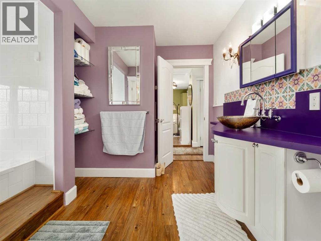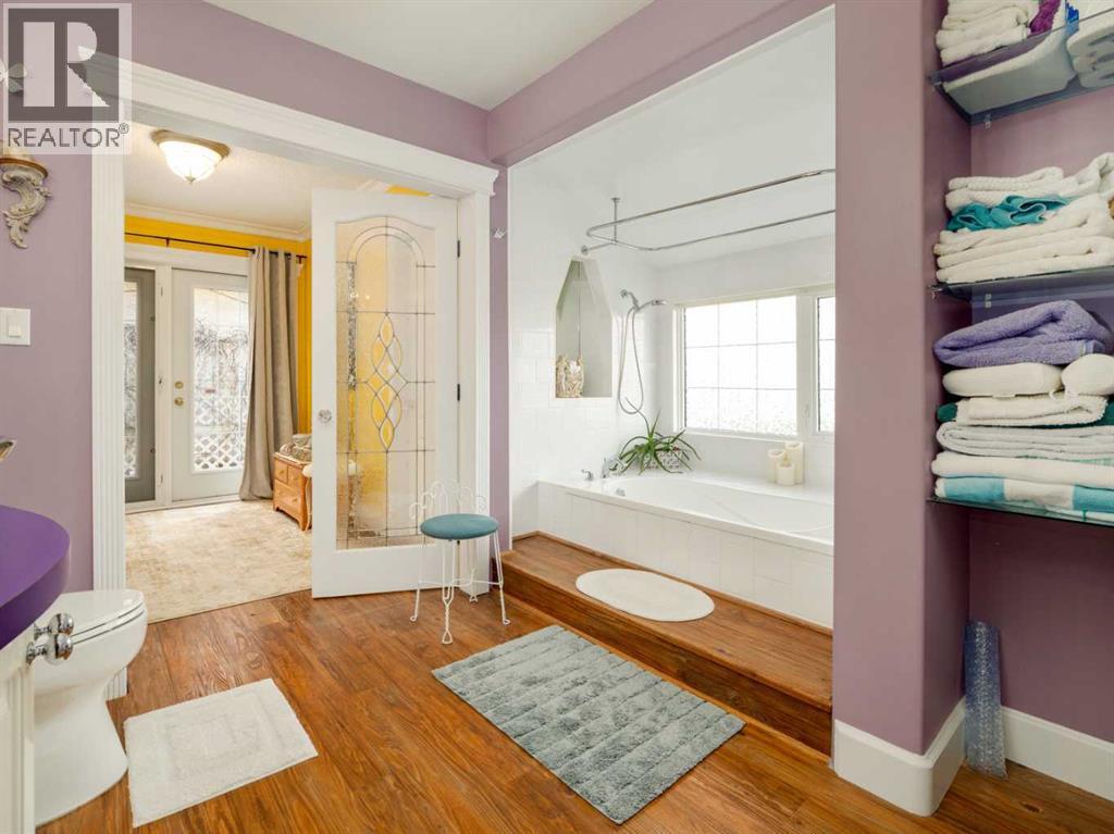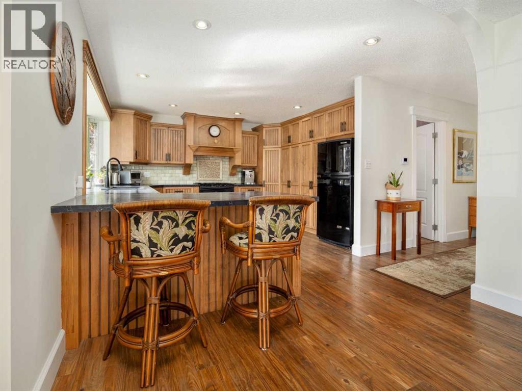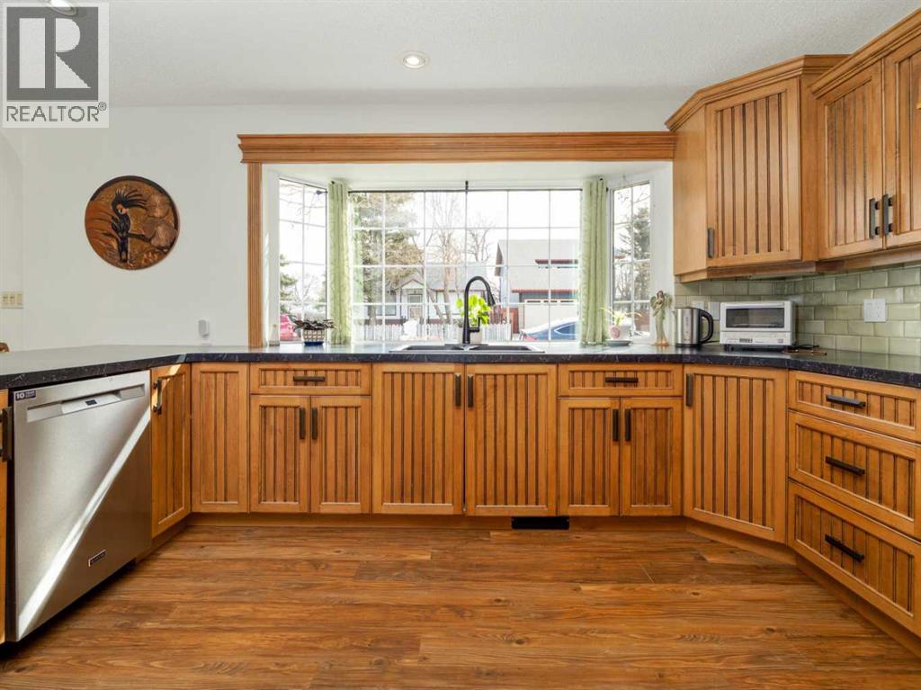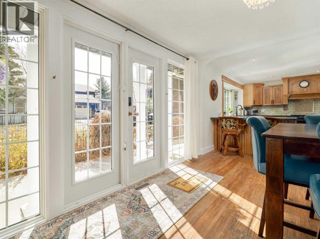 Beautifully updated bungalow featuring architectural arches, a spa like bathroom, cosy living areas as well as interior and exterior french doors, huge windows that allow for a ton of light to flood in and, allow you to enjoy the morning sunrise in your front living room and the evening sunset from your family room! Sitting on a large 66 x 125 ft lot, that is landscaped to perfection , this home is a joy to show both inside and out. Featuring 2 bedrooms and 2 full baths as well as a 23 x 23 heated detached double garage with 9 ft doors, off alley parking and a lovely large deck and pergola, and central A/C . This home will appeal to both retiree's and young families , as all the living spaces are on the main level for easy one-floor living, with an open-concept living, dining, kitchen layout designed for those that love to entertain, or perfect for family time. And you Just have to see this kitchen! This kitchen rivals homes that you would see in a much higher price range or in magazines! This kitchen is a show stopper! If you love to cook and entertain you will be the talk of the town!. Some of the great features of this kitchen are the custom wood cabinetry featuring slow close drawers and cupboards, gas range, gorgeous wood hood fan, cabinets and pantry with pull out shelving and appliance garages with plug ins. The current owners have added the 3 Pc bathroom along with adding the 2nd bedroom and gas fireplace with an acoustic wall in the living room, also adding and upgrading all electrical plugs and light switches to the modern square switches along with finishing a cute storage area accessible from the outside rear of the home for all of your gardening tools. The rear deck and pergola have been painted and it's now ready for the new owners to start enjoying the lovely weather headed our way. Conveniently close to schools, parks, shopping, and transit. Recent upgrades also include a newer furnace, A/C, dishwasher, garage shingles, pot lights front and back, professional landscaping, tree trimming, and fresh paint throughout most of the home. A rare find you won’t want to miss. (Please note that the home is not barrier free, and there is one step down into the slightly sunken living room, home could possibly be modified to be barrier free with some modifications) (id:40000)