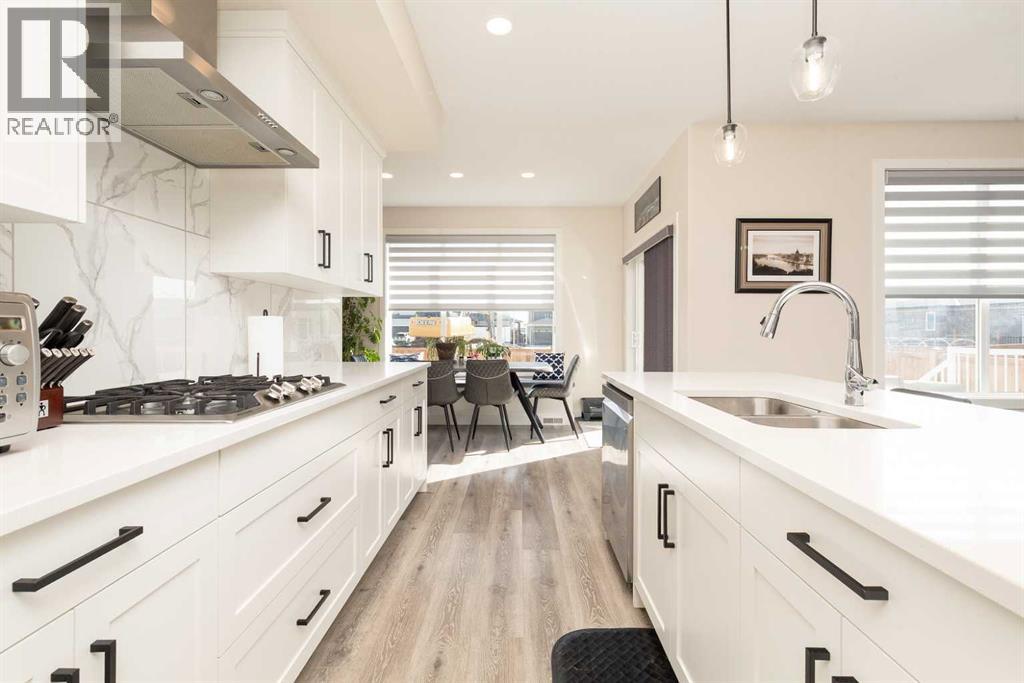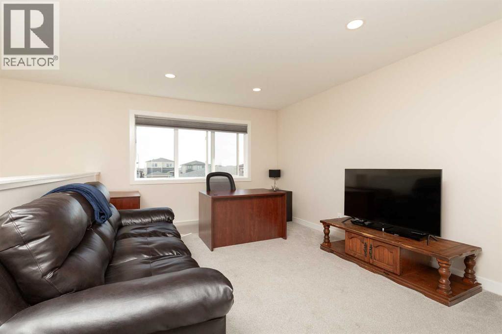 Welcome to 1009 Atlantic Lookout West. This Cedar Ridge Daisy model offers the space buyers are looking for with a rare triple garage and a fully finished home from top to bottom inside and out. The main floor features a bright open concept layout with a spacious kitchen, large dining area, comfortable living room, and welcoming entry. It is a great setup for both everyday living and entertaining guests. Upstairs you will find a beautiful Master Bedroom retreat complete with a dual vanity ensuite and a large walk in closet. Two additional bedrooms, a full bathroom, and a generous loft style bonus room create the perfect upper level for families who want extra living space. The basement has now been fully developed and adds even more value with an additional bedroom, another full bathroom, and a comfortable family room that works perfectly for movie nights, teenagers, or visiting guests. Outside is where this property really stands out. The yard is fully fenced and landscaped with underground sprinklers already installed. The deck creates an excellent entertaining space and makes the backyard ready to enjoy from day one. A nice bonus feature is the installed Home One LED soffit lighting system which lets you customize exterior lighting year round. Whether it is game night, holidays, or special occasions, this feature makes the home stand out on the street and adds a fun personality to the property. Watch the neighborhood light up as your team scores! Located in the Crossings community, you are close to shopping, restaurants, schools, parks, and the ATB Centre. Homes with this combination of triple garage, finished basement, and completed yard rarely come available in this area. (id:40000)
