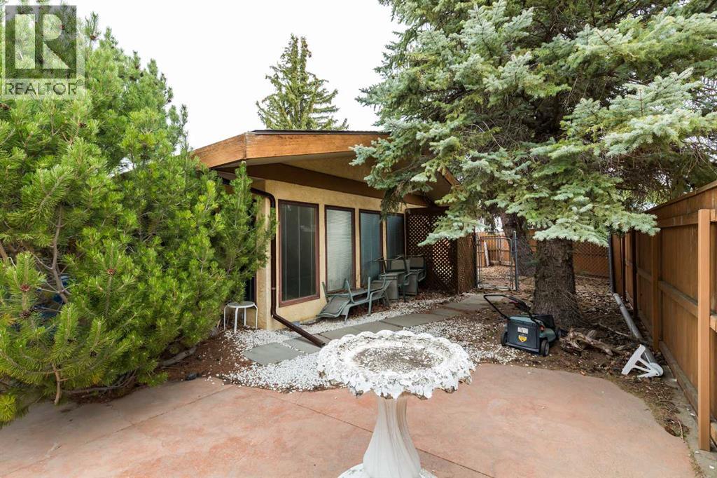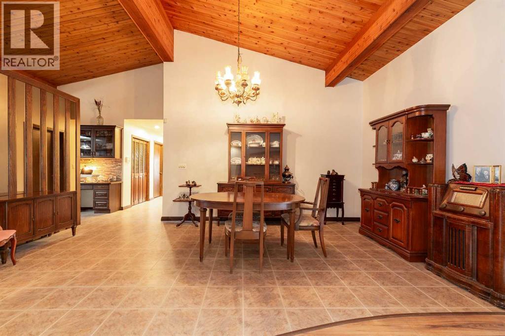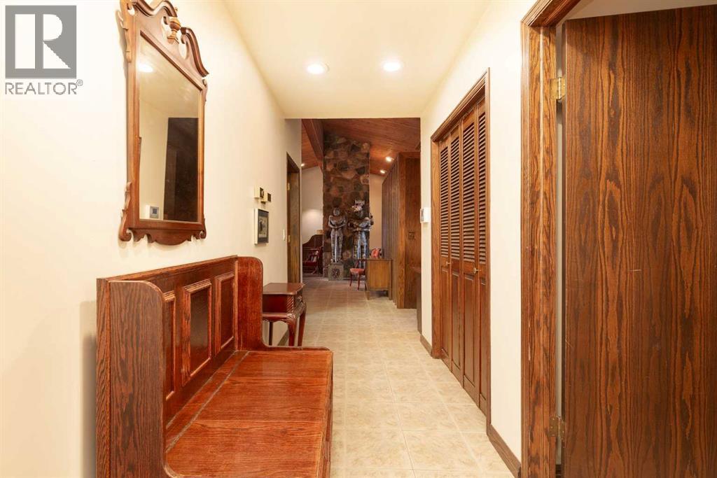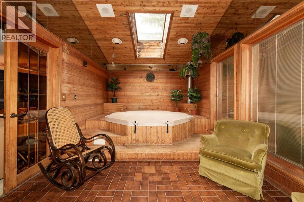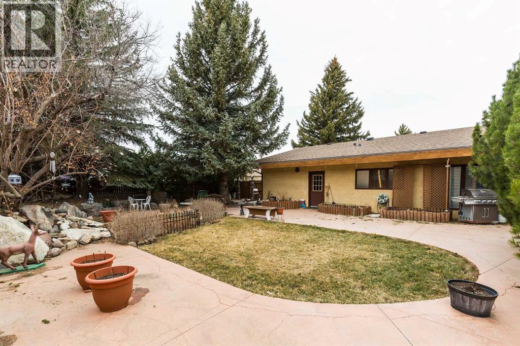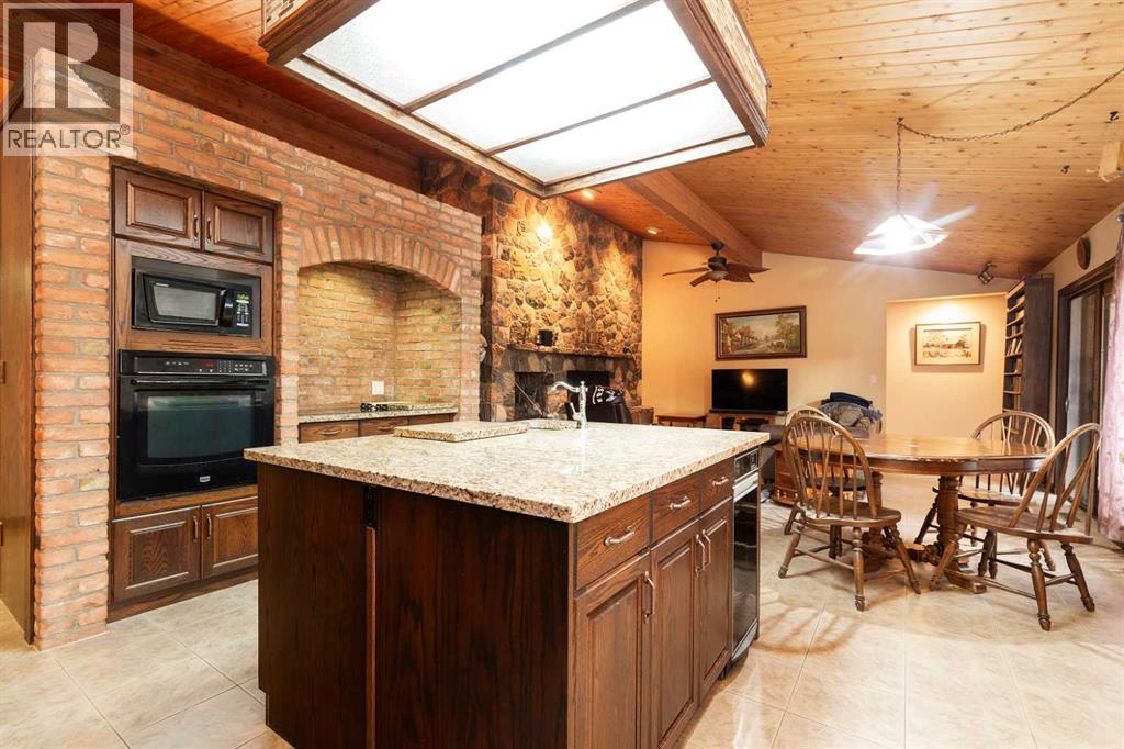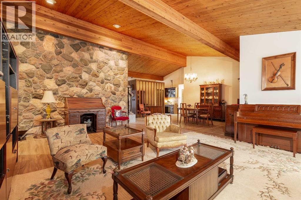 Welcome to 2125 25 St. Tucked away in a quiet cul-de-sac, this impressive 3,420 sq. ft. bungalow offers a rare blend of space, character, and refined design, all set on a beautifully treed 12,775 sq. ft. lot. Showcasing a warm mid-century modern influence, the home features timeless architectural elements, natural materials, and a layout that emphasizes both form and function. The main living area is truly striking, highlighted by soaring beamed cedar vaulted ceilings and a thoughtfully designed layout that balances formal and casual spaces. A floor-to-ceiling custom rock wood-burning fireplace serves as a stunning focal point, gracefully separating the formal living and sitting rooms from the inviting family room, kitchen, and breakfast nook. The expansive kitchen is well-appointed with a large island, built-in oven, and a distinctive brick surround stovetop. The home features 3 bedrooms, a separate office, and 3 full bathrooms, with all 3 bedrooms enjoying direct access to a bathroom, including two bedrooms with private ensuites,. The primary suite is a luxurious retreat, complete with a walk-in closet and a spacious ensuite offering dual vanities, a soaker tub, and a separate shower. Just off the primary bedroom, a private hot tub room with a skylight and sliding glass doors opens to the patio—creating a serene, spa-like escape. Outdoors, the fully fenced and landscaped yard is framed by mature trees, providing both privacy and a tranquil setting. A double attached garage and space for RV parking compliment this exceptional property. A distinctive home offering timeless appeal in a sought-after Coaldale location. (id:40000)