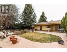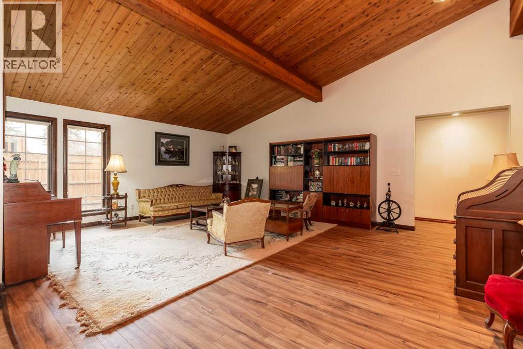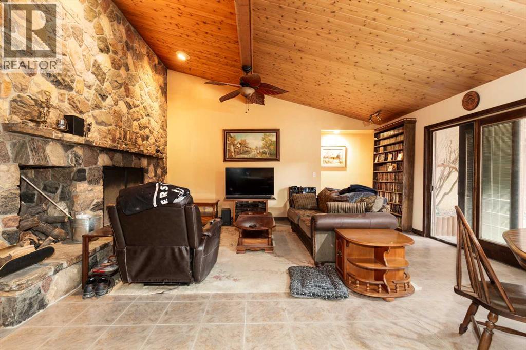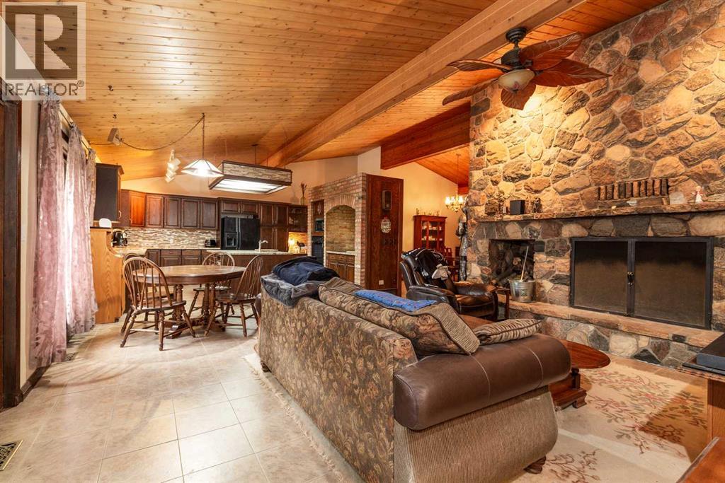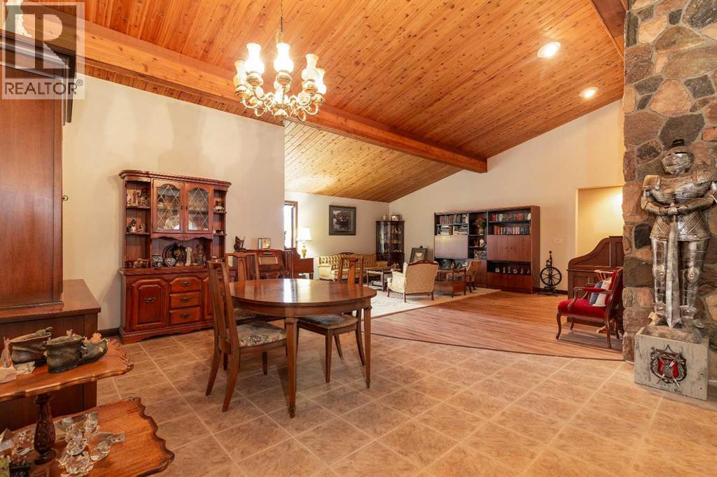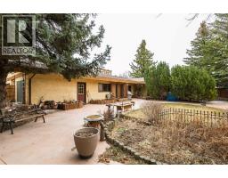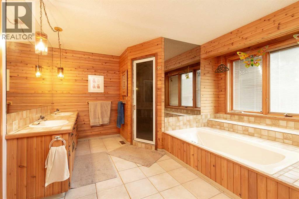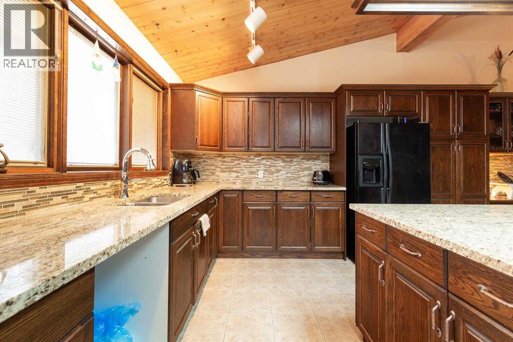 Welcome to 2125 25 St. Tucked away in a quiet cul-de-sac, this impressive 3,420 sq. ft. bungalow offers a rare blend of space, character, and refined design, all set on a beautifully treed 12,775 sq. ft. lot. Showcasing a warm mid-century modern influence, the home features timeless architectural elements, natural materials, and a layout that emphasizes both form and function. The main living area is truly striking, highlighted by soaring beamed cedar vaulted ceilings and a thoughtfully designed layout that balances formal and casual spaces. A floor-to-ceiling custom rock wood-burning fireplace serves as a stunning focal point, gracefully separating the formal living and sitting rooms from the inviting family room, kitchen, and breakfast nook. The expansive kitchen is well-appointed with a large island, built-in oven, and a distinctive brick surround stovetop. The home features 3 bedrooms, a separate office, and 3 full bathrooms, with all 3 bedrooms enjoying direct access to a bathroom, including two bedrooms with private ensuites,. The primary suite is a luxurious retreat, complete with a walk-in closet and a spacious ensuite offering dual vanities, a soaker tub, and a separate shower. Just off the primary bedroom, a private hot tub room with a skylight and sliding glass doors opens to the patio—creating a serene, spa-like escape. Outdoors, the fully fenced and landscaped yard is framed by mature trees, providing both privacy and a tranquil setting. A double attached garage and space for RV parking compliment this exceptional property. A distinctive home offering timeless appeal in a sought-after Coaldale location. (id:40000)