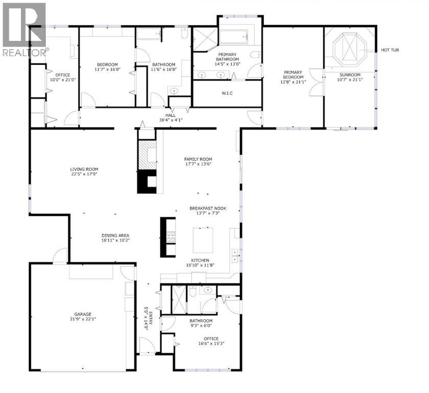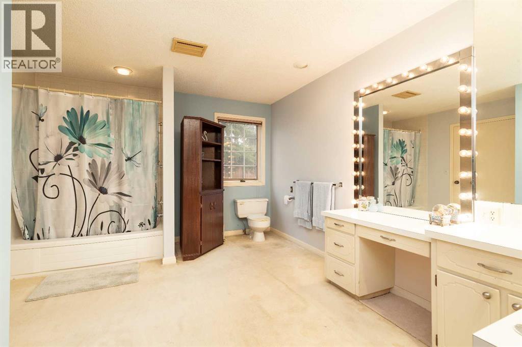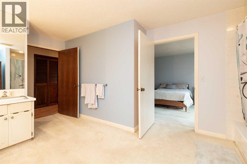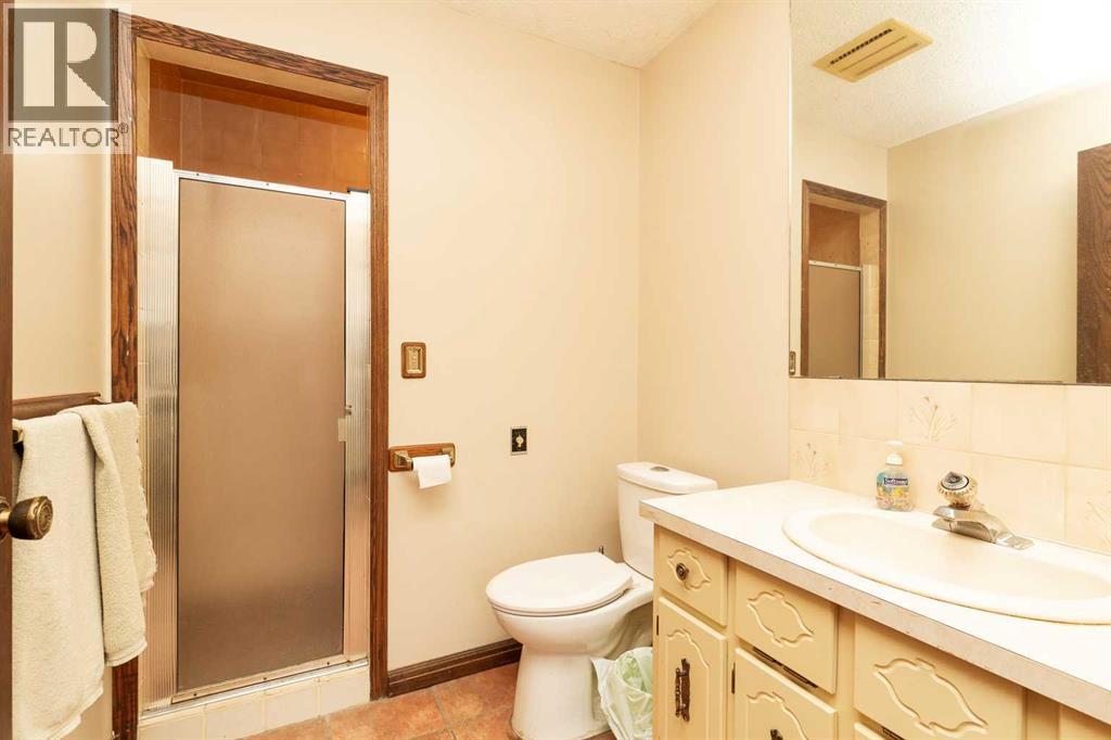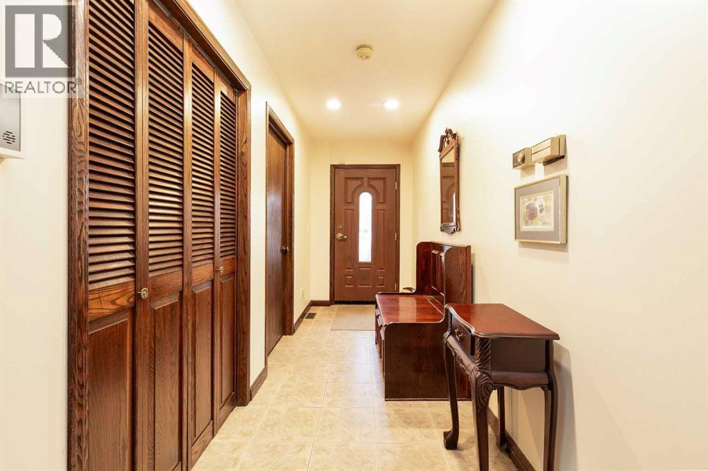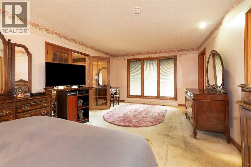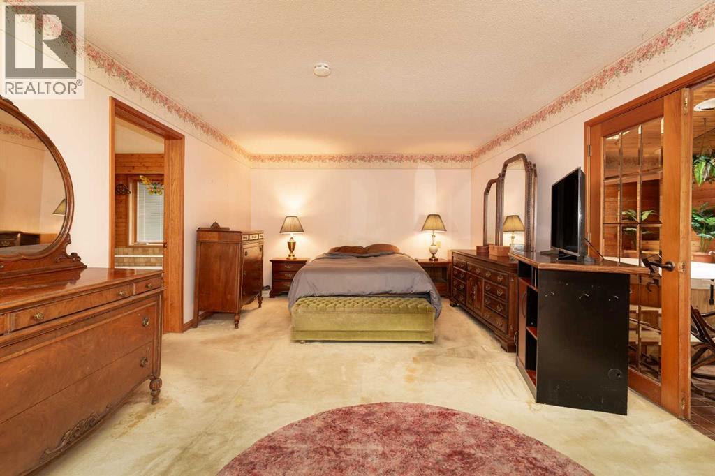Welcome to 2125 25 St. Tucked away in a quiet cul-de-sac, this impressive 3,420 sq. ft. bungalow offers a rare blend of space, character, and refined design, all set on a beautifully treed 12,775 sq. ft. lot. Showcasing a warm mid-century modern influence, the home features timeless architectural elements, natural materials, and a layout that emphasizes both form and function. The main living area is truly striking, highlighted by soaring beamed cedar vaulted ceilings and a thoughtfully designed layout that balances formal and casual spaces. A floor-to-ceiling custom rock wood-burning fireplace serves as a stunning focal point, gracefully separating the formal living and sitting rooms from the inviting family room, kitchen, and breakfast nook. The expansive kitchen is well-appointed with a large island, built-in oven, and a distinctive brick surround stovetop. The home features 3 bedrooms, a separate office, and 3 full bathrooms, with all 3 bedrooms enjoying direct access to a bathroom, including two bedrooms with private ensuites,. The primary suite is a luxurious retreat, complete with a walk-in closet and a spacious ensuite offering dual vanities, a soaker tub, and a separate shower. Just off the primary bedroom, a private hot tub room with a skylight and sliding glass doors opens to the patio—creating a serene, spa-like escape. Outdoors, the fully fenced and landscaped yard is framed by mature trees, providing both privacy and a tranquil setting. A double attached garage and space for RV parking compliment this exceptional property. A distinctive home offering timeless appeal in a sought-after Coaldale location. (id:40000)