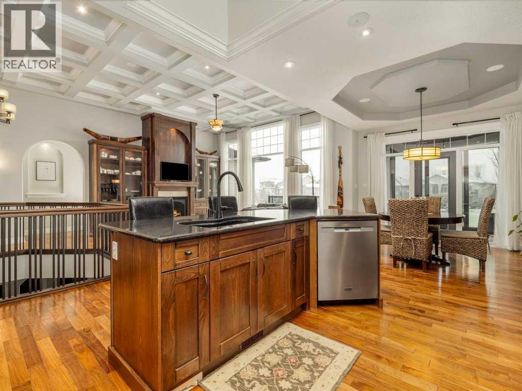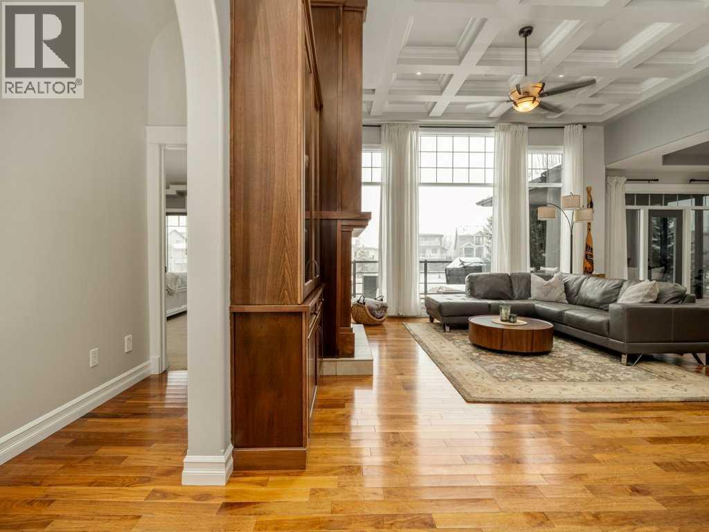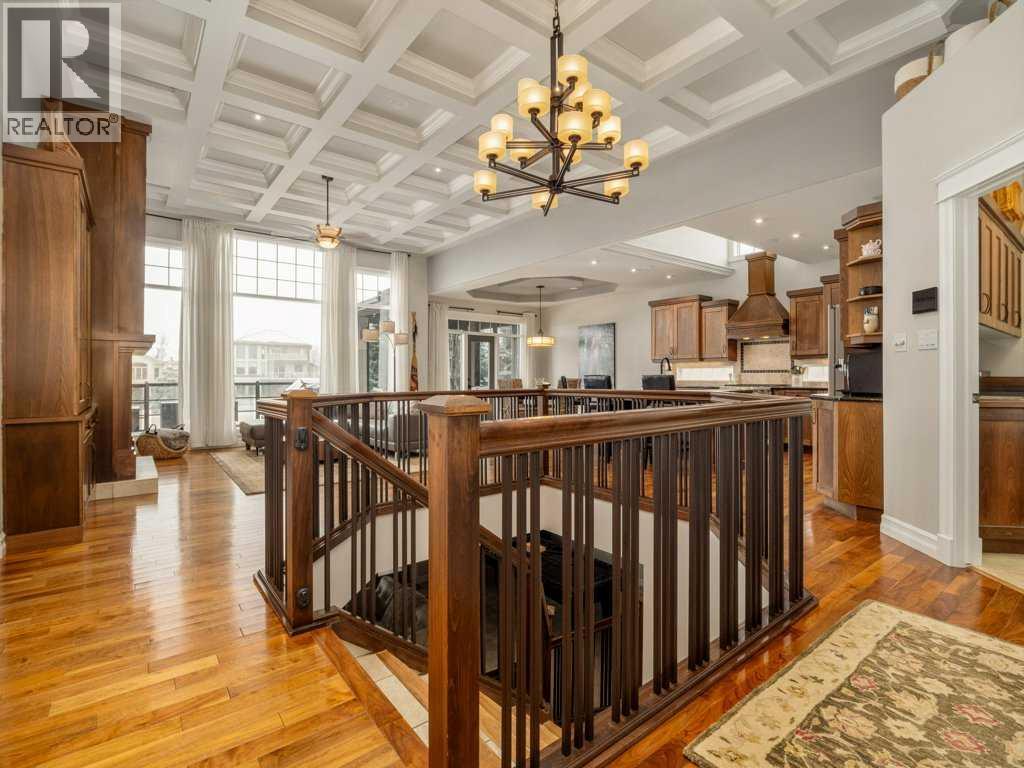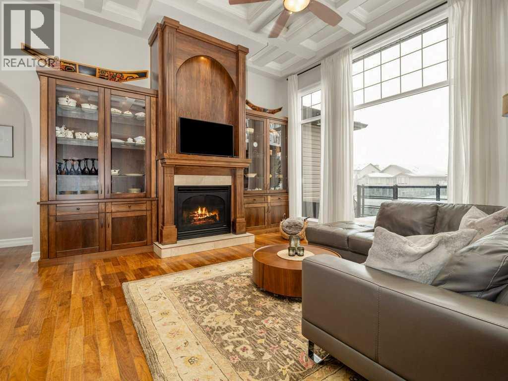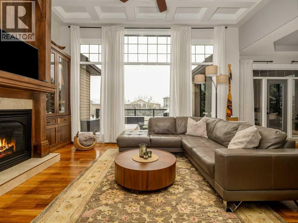 Experience elevated living in this exceptional former Signature Show Home, crafted with a level of detail and timeless design. Perfectly positioned to capture tranquil lake and park views, this home offers an unmatched combination of luxury, comfort, and privacy in one of the most desirable neighbourhoods. From the moment you step inside, the quality is undeniable. Intricate coffered ceilings, expansive windows, and a grand fireplace framed by custom wood built-in bookcases create a warm yet sophisticated main living space. Rich hardwood floors flow throughout, complementing the home’s elegant architectural features. The chef’s kitchen is both beautiful and functional, complete with a spacious pantry designed to inspire culinary creativity and effortless entertaining. Main floor laundry adds everyday convenience, while the recently upgraded Control4 smart home system ensures modern living at your fingertips. Retreat to the luxurious primary suite, where large windows invite in natural light and peaceful views. The spa-inspired five-piece ensuite offers a serene escape at the end of the day. The fully developed walkout lower level is an entertainer’s dream. Enjoy movie nights in the dedicated theatre room (which can easily convert back to a bedroom if desired), relax by the gas fireplace, or host gatherings around the pool table and wet bar. Step outside to your private hot tub area for the ultimate unwind. Backing onto a serene stream, pond, and expansive greenspace, the backyard offers exceptional privacy. The generous upper deck — partially enclosed with privacy glass — allows you to enjoy peaceful morning coffees or evening sunsets year-round, with half of the deck covered for added comfort in any season. Additional highlights include heated basement floors, a newly installed hot water tank/boiler, and a garage equipped with a car lift for your prized vehicle. Meticulously maintained here is a rare opportunity to own a showpiece home in an extraordinary setting. Call your realtor today and book a showing. (id:40000)