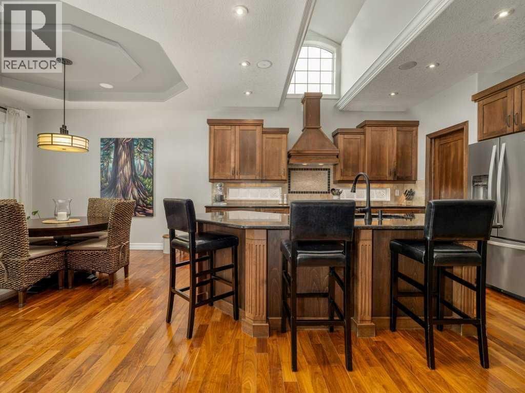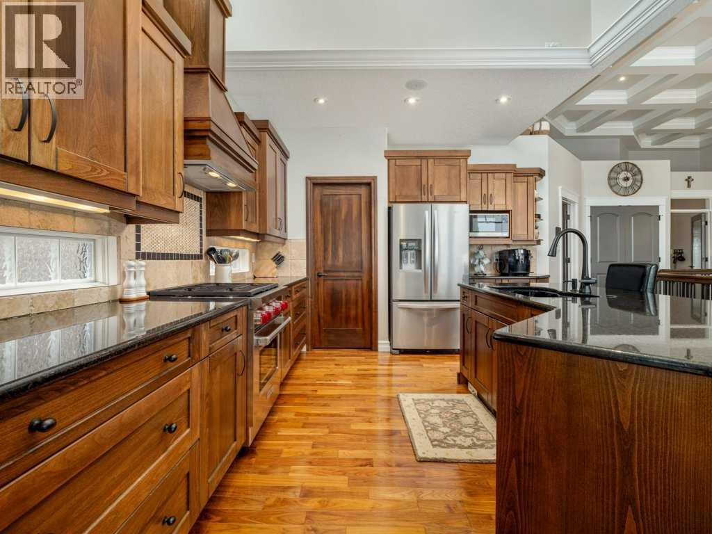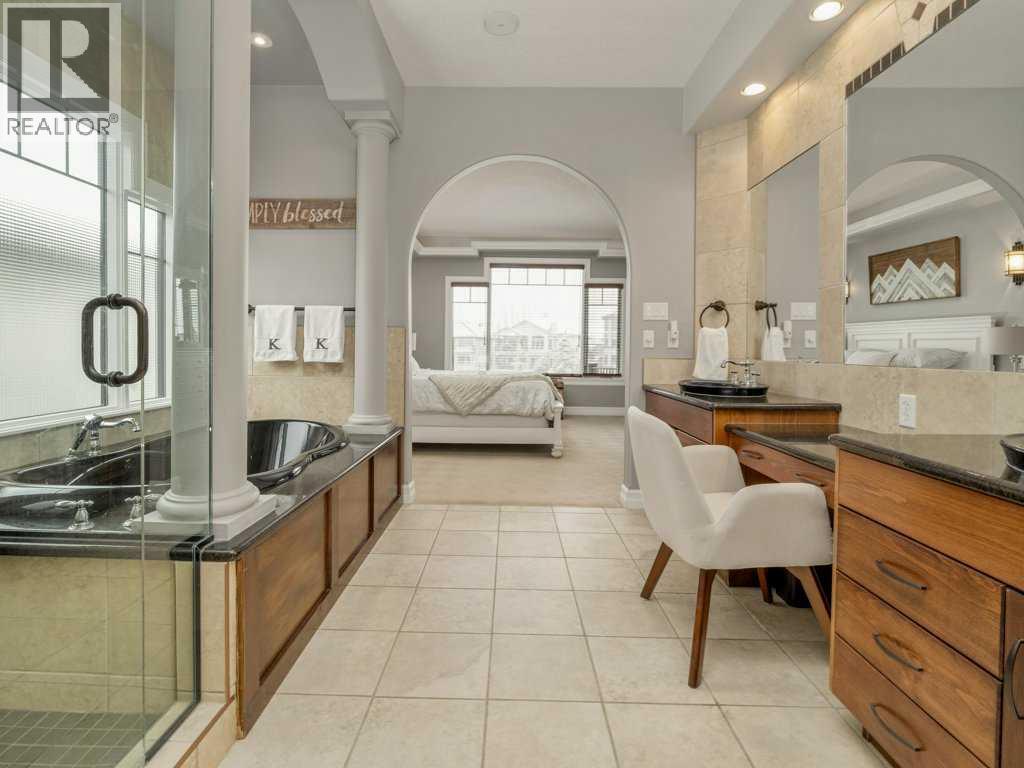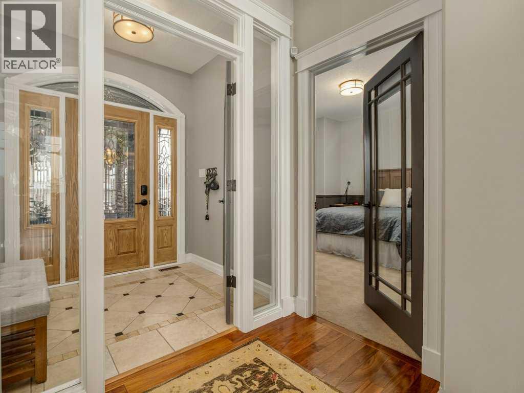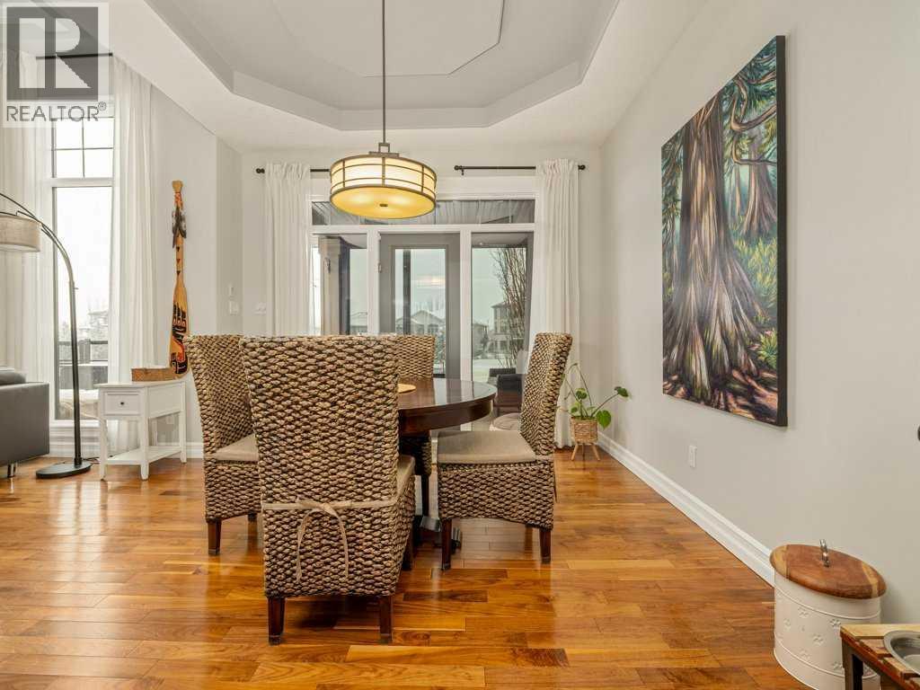 Experience elevated living in this exceptional former Signature Show Home, crafted with a level of detail and timeless design. Perfectly positioned to capture tranquil lake and park views, this home offers an unmatched combination of luxury, comfort, and privacy in one of the most desirable neighbourhoods. From the moment you step inside, the quality is undeniable. Intricate coffered ceilings, expansive windows, and a grand fireplace framed by custom wood built-in bookcases create a warm yet sophisticated main living space. Rich hardwood floors flow throughout, complementing the home’s elegant architectural features. The chef’s kitchen is both beautiful and functional, complete with a spacious pantry designed to inspire culinary creativity and effortless entertaining. Main floor laundry adds everyday convenience, while the recently upgraded Control4 smart home system ensures modern living at your fingertips. Retreat to the luxurious primary suite, where large windows invite in natural light and peaceful views. The spa-inspired five-piece ensuite offers a serene escape at the end of the day. The fully developed walkout lower level is an entertainer’s dream. Enjoy movie nights in the dedicated theatre room (which can easily convert back to a bedroom if desired), relax by the gas fireplace, or host gatherings around the pool table and wet bar. Step outside to your private hot tub area for the ultimate unwind. Backing onto a serene stream, pond, and expansive greenspace, the backyard offers exceptional privacy. The generous upper deck — partially enclosed with privacy glass — allows you to enjoy peaceful morning coffees or evening sunsets year-round, with half of the deck covered for added comfort in any season. Additional highlights include heated basement floors, a newly installed hot water tank/boiler, and a garage equipped with a car lift for your prized vehicle. Meticulously maintained here is a rare opportunity to own a showpiece home in an extraordinary setting. Call your realtor today and book a showing. (id:40000)